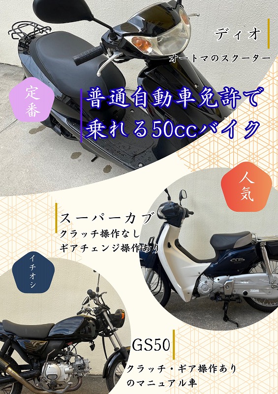 ちょっとそこまで♪ 気軽に乗れちゃう50ccバイク~ 当日(10:00~19:00)2,900円~